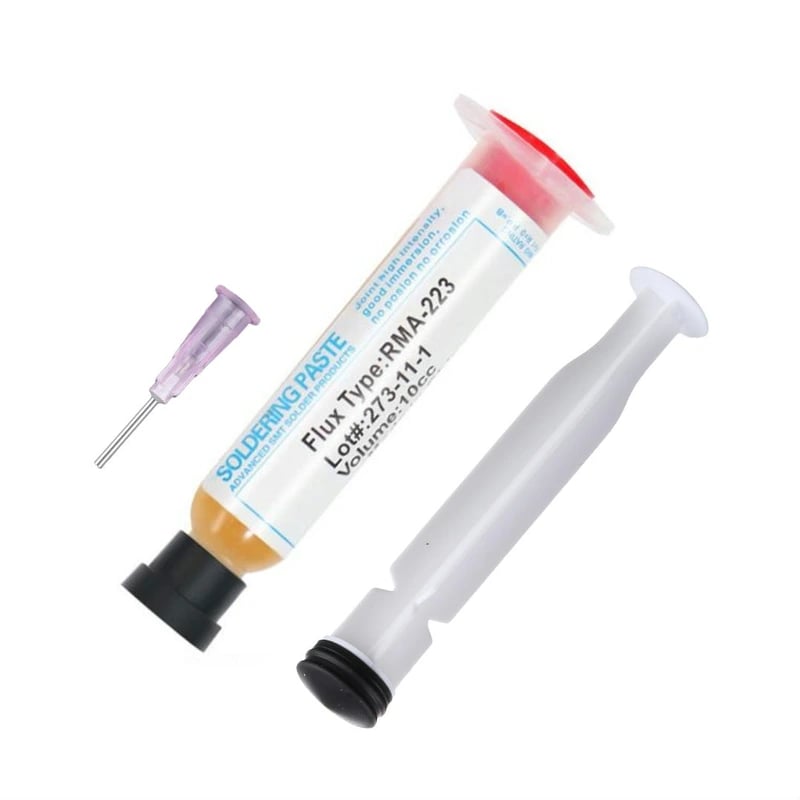Flussmedel i 10ml doseringspruta med nål. Underlättar lödning vid reparationer och ytmontering.