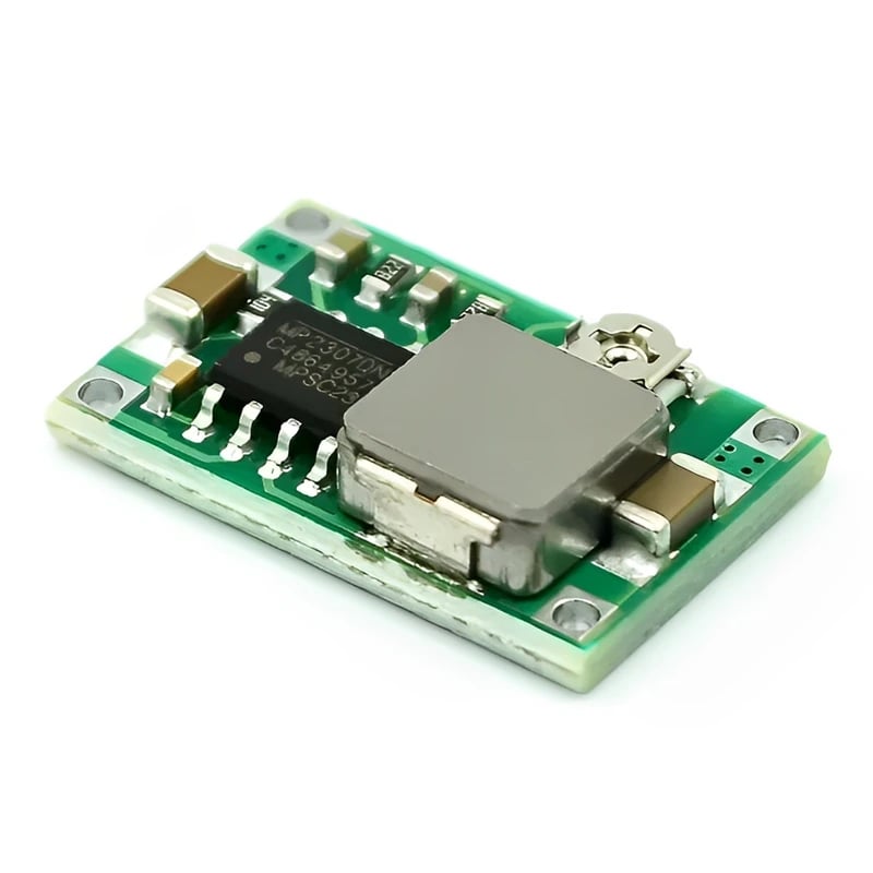 Modulen har ett MP2307 chip, och är extremt liten och lätt, utmärkt i trånga utrymmen. Enkel att använda, anslut till strömkällan och justera på skruven för att minska / öka utspänningen.