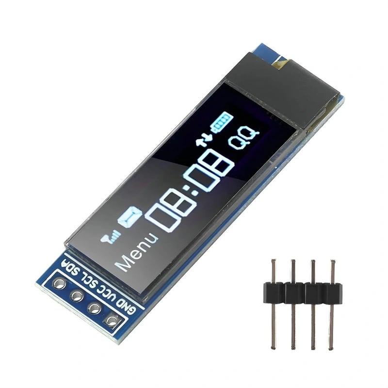 En väldigt liten OLED Display som är lätt att läsa av tack vare hög kontrast. 128 x 32 bildpunkter som styrs individuellt av det inbyggda chippet.